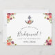 Navy Blue Anchor Floral Will You Be My Bridesmaid Card.