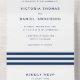 Invite guests to your wedding with this customisable all-in-one wedding invitation. It features a navy blue anchor illustration, classic typography and a stripes pattern. The texts are fully editable. Personalise by adding your event details. This navy blue wedding invitation is perfect for nautical weddings and summer weddings.