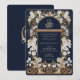 Navy Blue and Antique Gold Floral Islamic Wedding Invitation