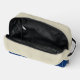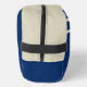 A dark blue and beige design, with two horizontal lines on the front that resemble pockets.