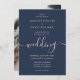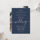 Navy Blue and Blush Photo Modern Script Wedding Invitation