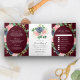 Navy Blue and Blush Pink Floral Burgundy Wedding Tri-Fold Invitation