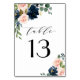 Navy Blue and Blush Pink Floral Country Wedding Table Number