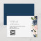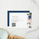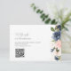 A QR code RSVP wedding card with simple black lettering, navy blue and blush watercolor flowers.