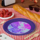 Personalise the happy Mother's day text to any special occasion, or text is removable on these large rose flowered paper plates in navy blue, light blue and bright pink.