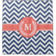 Navy Blue and Coral Chevron Laurel Monogram Shower Curtain