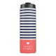 Stylish custom thermal tumbler in coral, navy blue and white colours. This design features a preppy classic navy and white striped pattern. Personalise it with your name monogram or other custom text with a cute heart symbol. Use the design tools to choose any background colours, edit the text fonts and colours and upload your own photos to create a unique one of a kind monogrammed water bottle.