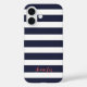 Navy Blue and Coral Classic Stripes Monogram Case-Mate iPhone Case