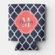 Navy Blue and Coral Moroccan Quatrefoil Monogram Can Cooler