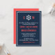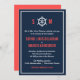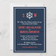 Dark navy blue and coral wedding invitation with a white helm illustration in between the bride and grooms initials. This is perfect for nautical themed weddings or sea and ocean themed weddings.