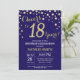 Navy Blue and Gold 18th Birthday Diamond Invitation