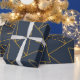 Beautiful modern geometric pattern with golden lines on the navy blue background.