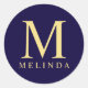 Navy Blue and Gold Elegant Monogram Classic Round Sticker