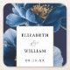 Navy Blue And Gold Floral Elegant Modern Wedding Square Paper Coaster