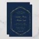 Elegant Navy blue and gold wedding invitation, featuring a geometric gold foil frame and gold foil script.