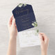 Navy Blue And Gold Greenery Monogram Wedding All In One Invitation