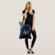 This bag features an elegant and glamourous agate marble background with geode gemstone detailing and faux gold glitter accents. The monogram combines handwritten script and modern sans serif fonts for a classy and sophisticated look. This will make the ideal gift as it can be customised with a name and initial. The deep blue hues make it perfect for autumn fall and winter.