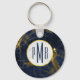 Navy Blue and Gold Marble Modern Stylish Monogram Key Ring