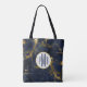 Navy Blue and Gold Marble Modern Stylish Monogram Tote Bag
