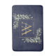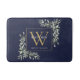 Navy Blue And Gold Monogram Greenery Leaves Bath Mat
