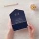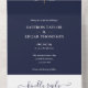 This chic minimalist all-in-one wedding invitation can be personalised with your monogram initials and wedding day information on a navy blue background. The invitation includes a perforated RSVP with your wedding website QR code and details. Designed by Thisisnotme©