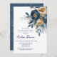 Navy Blue and Gold Peony Flower Bachelorette Party Invitation