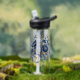 Navy Blue and Gold Peony Flower Wedding Bridesmaid Water Bottle