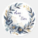 Navy Blue and Gold Peony Flower Wedding Classic Round Sticker