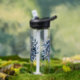 Navy Blue and Gold Peony Flower Wedding Groomsmen Water Bottle