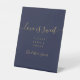Navy Blue And Gold Script Love Is Sweet Favor Pedestal Sign