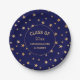 Gold stars on navy blue background graduation party paper plates featuring your class year and graduate's name. Also, you are able to change background to any colour you want by clicking customise this design.