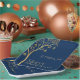 Navy Blue And Gold tree Christmas Script Name Paper Plate