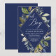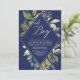 Navy blue and green foliage boy baby shower invitation