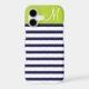 Cute Modern Girly Trendy Chic Stylish Design with Preppy Horizontal Stripes and Solid Colour Block with Custom Personalised Monogram Initial Letter