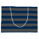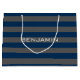 Navy Blue and Grey Rugby Stripes with Custom Name Large Gift Bag
