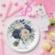 Navy Blue and Ivory Floral Wedding Paper Plate