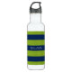 Navy Blue and Lime Green Rugby Stripes Custom Name 710 Ml Water Bottle