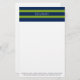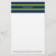 Navy Blue and Lime Green Rugby Stripes Custom Name Stationery