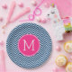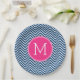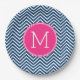 Navy Blue and Magenta Chevrons Custom Monogram Paper Plate