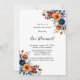 Navy Blue and Orange Peony Bachelorette Party Invitation