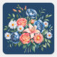Navy Blue and Orange Peony Flower Wedding Square Sticker