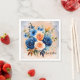 Navy Blue and Peach Painted Floral Wedding Napkin