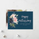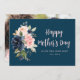 A watercolor floral photo card design with navy blue and pink flowers. The text and colours can be personalised.