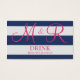 Navy Blue and Pink Monogram Wedding Drink Ticket