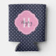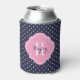 Navy Blue and Pink Polka Dots Monogram Can Cooler