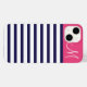 Navy Blue and Pink Preppy Stripes Custom Monogram Case-Mate iPhone Case
