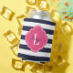 Navy Blue and Pink Preppy Stripes Monogram Can Cooler