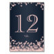 Blush pink and navy blue twinkle light effect design table number card to compliment matching wedding set.