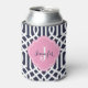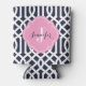 Navy Blue and Pink Trellis Monogram Can Cooler