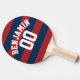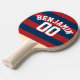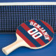 Navy Blue and Red Rugby Stripes Name Number Ping Pong Paddle